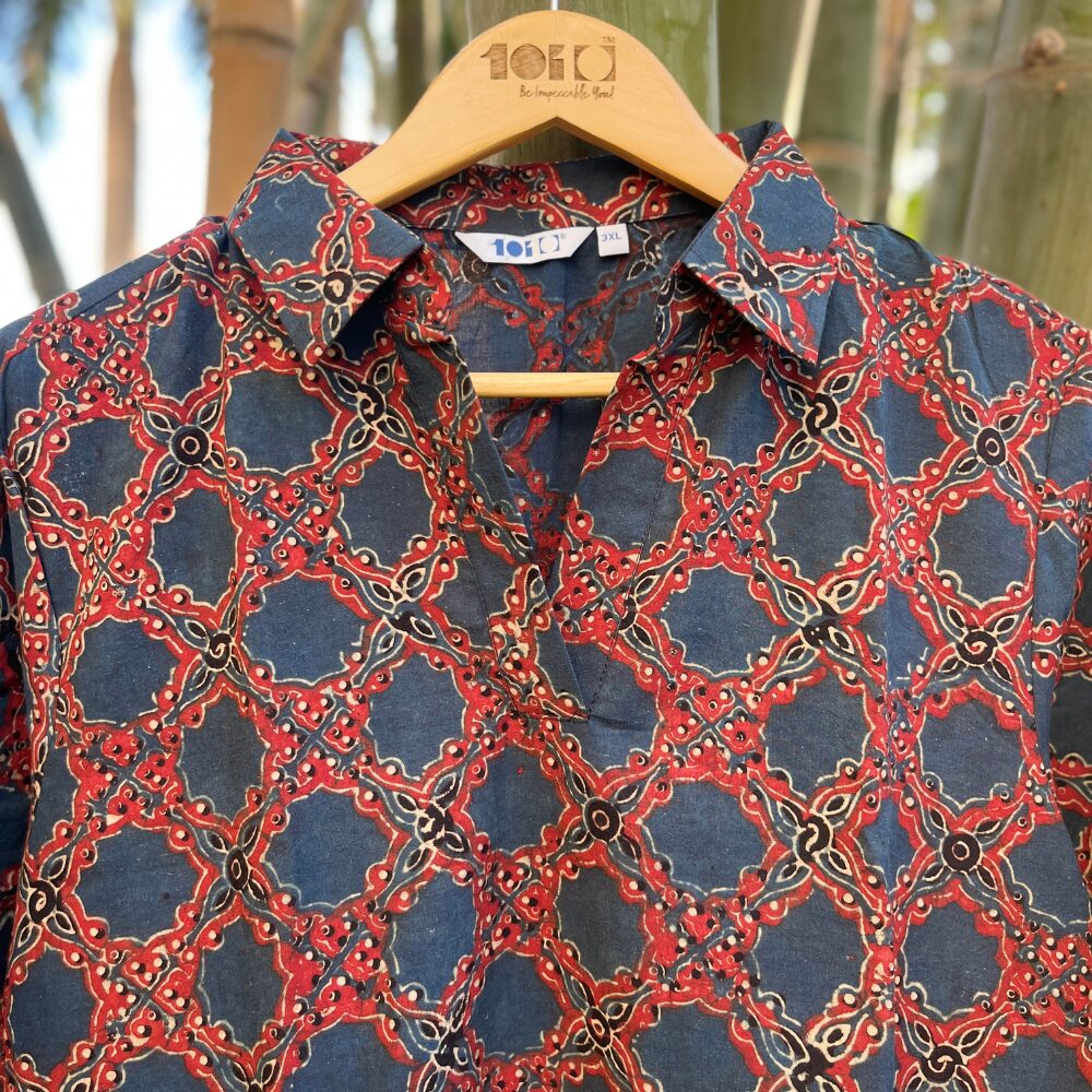 Handcrafted Ajrakh Cotton Short Kurta – lightweight, breathable & effortlessly stylish. Perfect for everyday wear, vacations, and warm-weather vibes.